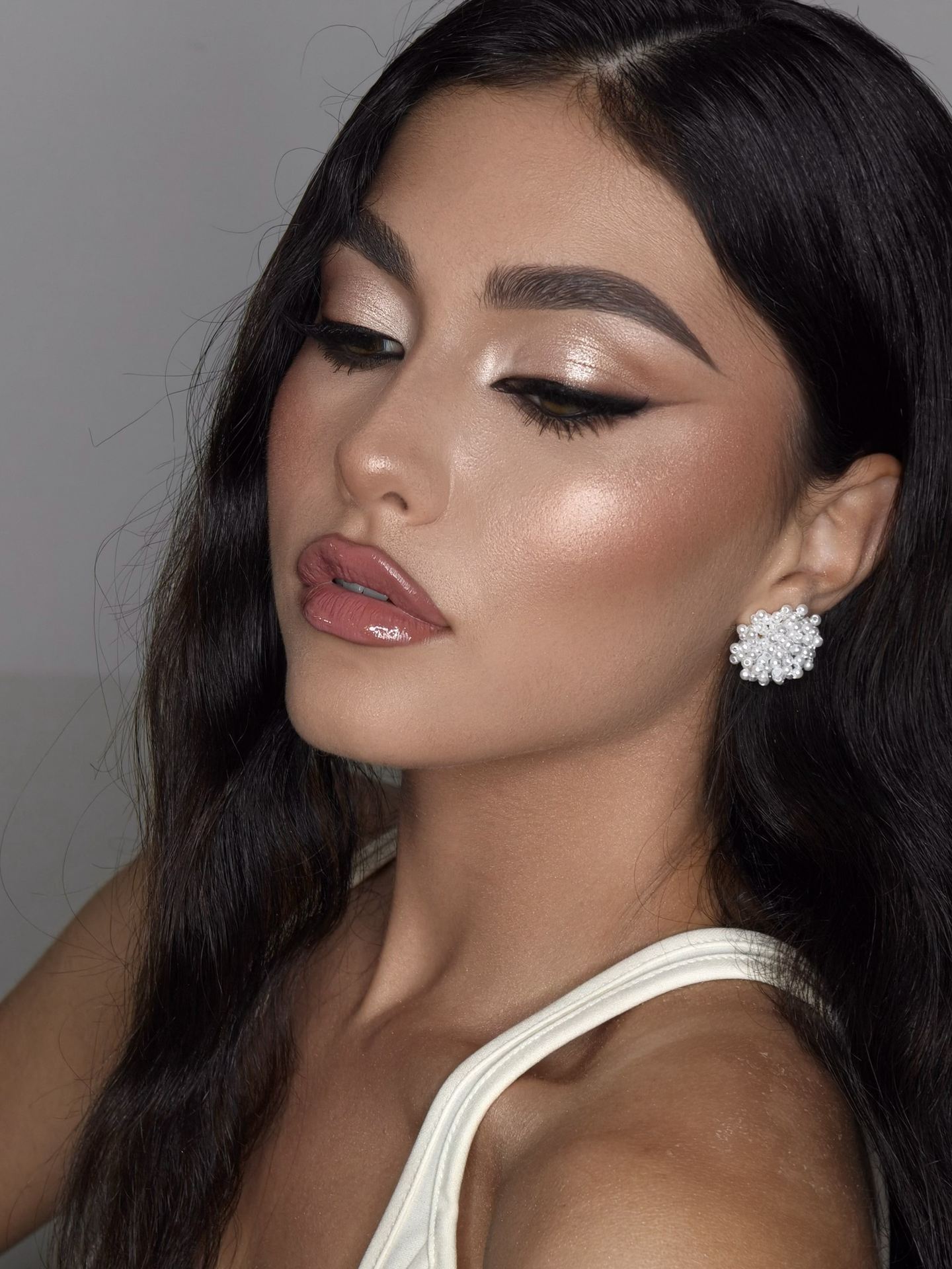 Dimostrazione di un look naturale dall’effetto liftante per un viso privo di luminosità e tono.